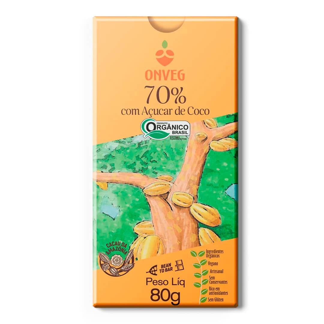 O Chocolate Vegano Com Açúcar de Coco da OnVeg é uma opção deliciosa e saudável para quem ama chocolate, mas deseja evitar ingredientes de origem animal. Com 70% de cacau, este chocolate é adoçado com açúcar de coco, proporcionando um sabor único e rico, além de ser livre de glúten e lactose. Ideal para quem busca um doce que combine sabor e saúde, ele é perfeito para qualquer hora do dia.