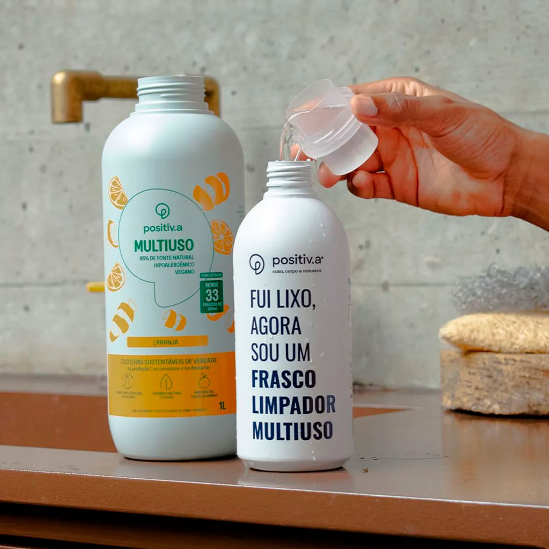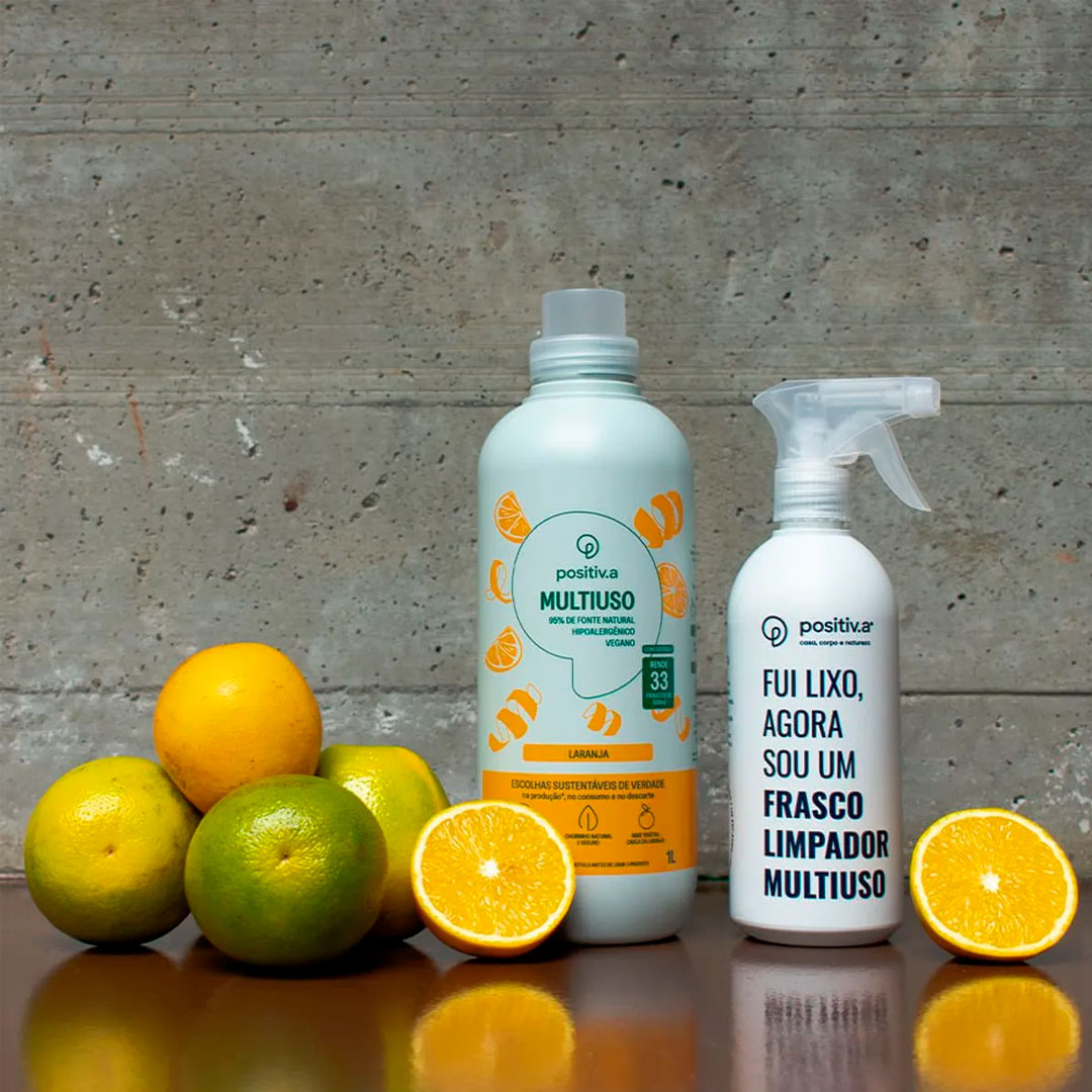 O Limpador Multiuso Natural da Positiv.a é superconcentrado e rende até 16,5 L após diluição, garantindo alto desempenho com economia. Ideal para a limpeza de diversas superfícies — do chão à bancada, do fogão à geladeira — sua fórmula é desengordurante, eficiente e perfuma suavemente com aroma natural de laranja. É biodegradável, vegano e livre de ingredientes tóxicos, garantindo uma limpeza eficaz sem comprometer sua saúde ou o meio ambiente. O frasco e a flanela são vendidos separadamente, incentivando o reuso consciente.